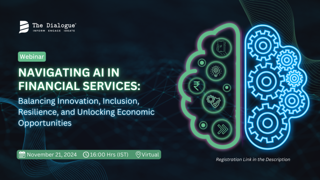 The Dialogue is proud to announce its upcoming webinar, “𝗡𝗮𝘃𝗶𝗴𝗮𝘁𝗶𝗻𝗴 𝗔𝗜 𝗶𝗻 𝗙𝗶𝗻𝗮𝗻𝗰𝗶𝗮𝗹 𝗦𝗲𝗿𝘃𝗶𝗰𝗲𝘀: 𝗕𝗮𝗹𝗮𝗻𝗰𝗶𝗻𝗴 𝗜𝗻𝗻𝗼𝘃𝗮𝘁𝗶𝗼𝗻, 𝗜𝗻𝗰𝗹𝘂𝘀𝗶𝗼𝗻, 𝗥𝗲𝘀𝗶𝗹𝗶𝗲𝗻𝗰𝗲, 𝗮𝗻𝗱 𝗨𝗻𝗹𝗼𝗰𝗸𝗶𝗻𝗴 𝗘𝗰𝗼𝗻𝗼𝗺𝗶𝗰 𝗢𝗽𝗽𝗼𝗿𝘁𝘂𝗻𝗶𝘁𝗶𝗲𝘀” on November 21, 2024. As the adoption of AI continues to reshape the financial landscape, it brings both opportunities and challenges. This webinar aims to explore the transformative potential of AI in financial services while addressing the need for responsible frameworks that protect individual privacy and ensure economic stability.