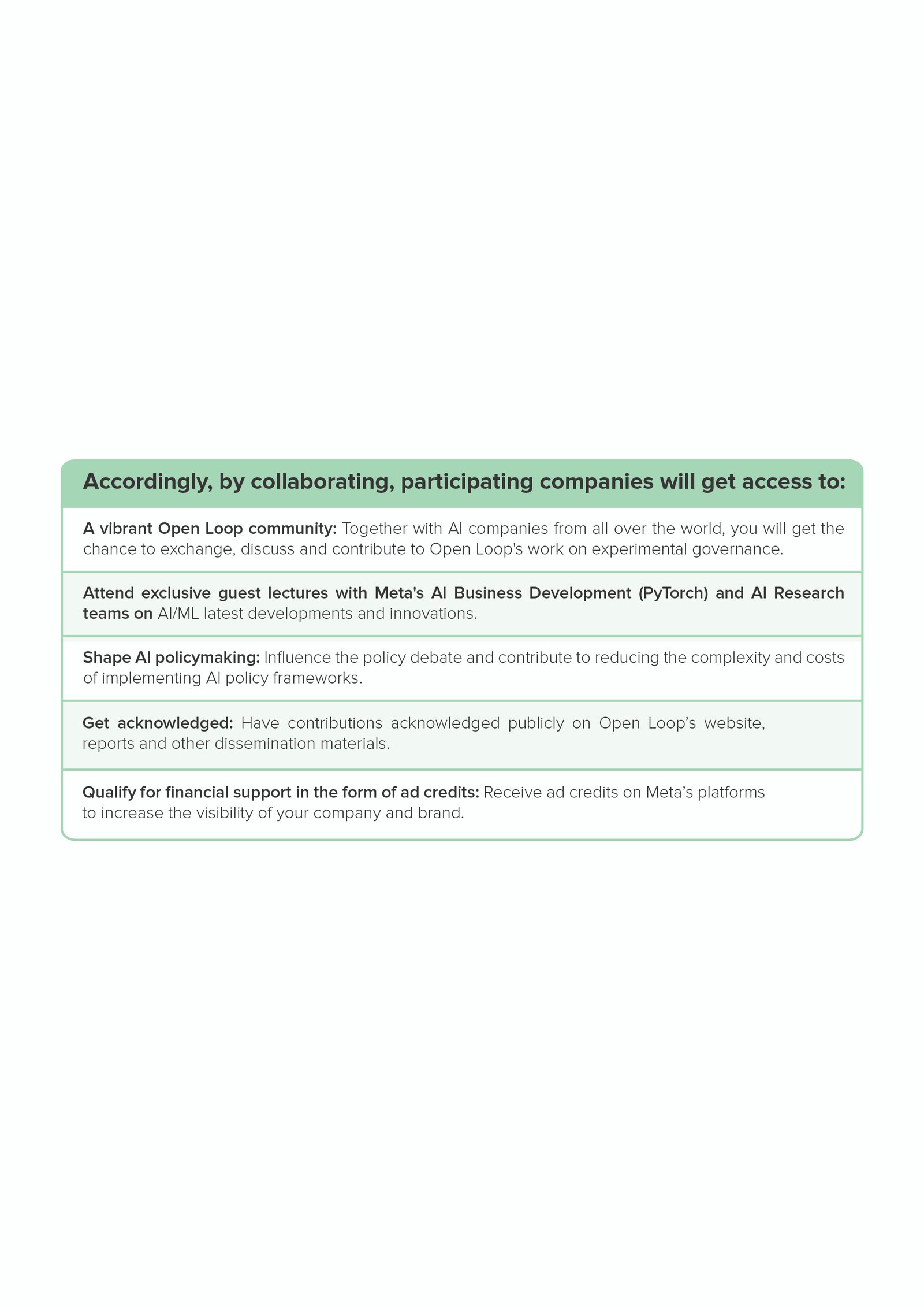 Open Loop is a global programme that connects policymakers and technology companies to help develop effective and evidence-based policies around AI and other emerging technologies. The programme, supported by Meta, builds on the collaboration and contributions of a consortium composed of regulators, governments, tech businesses, academics, and civil society representatives.